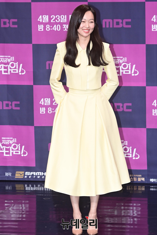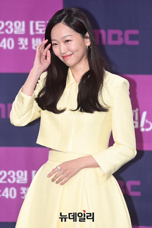 배우 진기주가 22일 오후 서울 마포구 MBC 골든마우스홀에서 열린 MBC 토일드라마 '지금부터, 쇼타임!(연출 이형민)' 언론초청 대면 제작발표회에서 포즈를 취하고 있다.