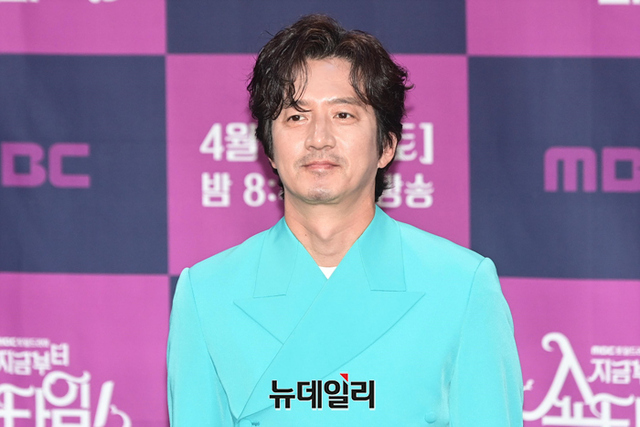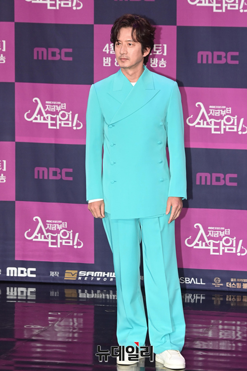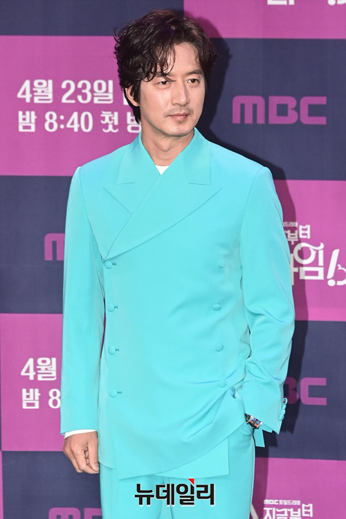 배우 정준호가 22일 오후 서울 마포구 MBC 골든마우스홀에서 열린 MBC 토일드라마 '지금부터, 쇼타임!(연출 이형민)' 언론초청 대면 제작발표회에서 포즈를 취하고 있다.
