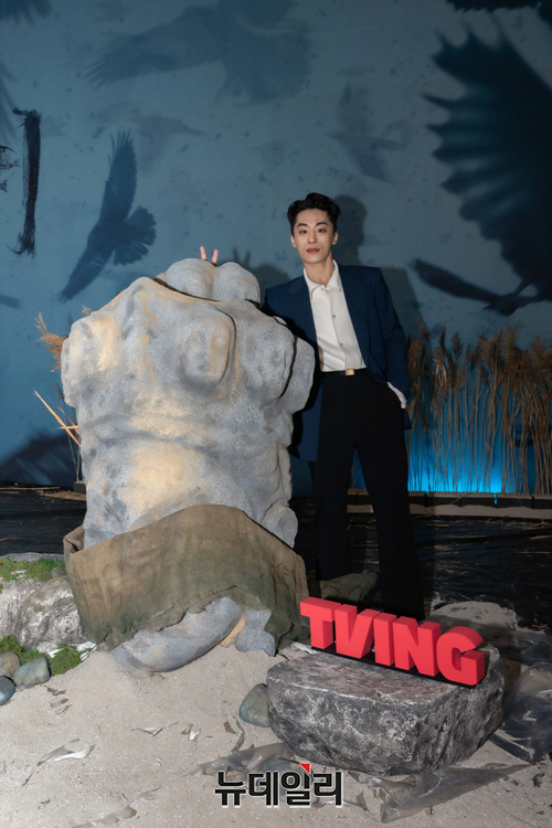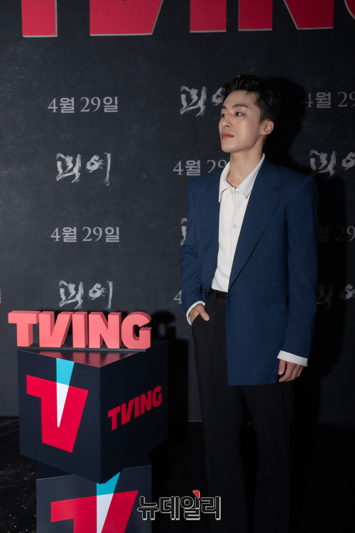 배우 구교환이 22일 오후 온라인으로 열린 티빙 새 오리지널 시리즈 '괴이(감독 장건재, 작가 연상호, 류용재)' 제작발표회에서 포즈를 취하고 있다.
