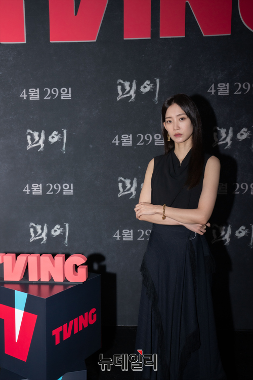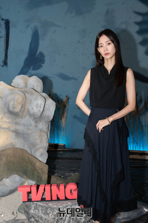 배우 신현빈이 22일 오후 온라인으로 열린 티빙 새 오리지널 시리즈 '괴이(감독 장건재, 작가 연상호, 류용재)' 제작발표회에서 포즈를 취하고 있다.