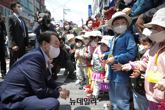 [포토] 부산 반송큰시장 찾은 윤석열 당선인