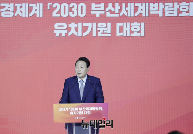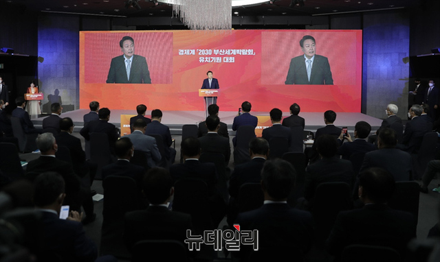 윤석열 대통령 당선인이 22일 오전 부산 진구 부산상공회의소에서 열린 '2030 부산세계박람회, 유치 기원대회'에서 발언을 하고 있다. (사진=인수위)