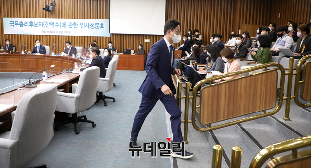 강병원 더불어민주당 의원이 25일 오전 국회에서 열린 한덕수 국무총리 후보자 인사청문회에서 후보자의 자료제출 미비에 항의하며 퇴장하고 있다. (사진=공동취재단)