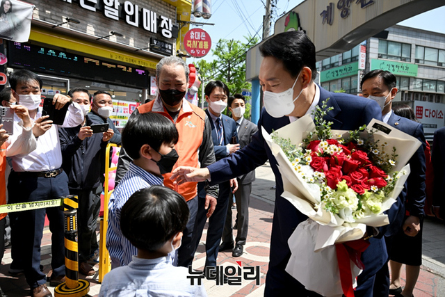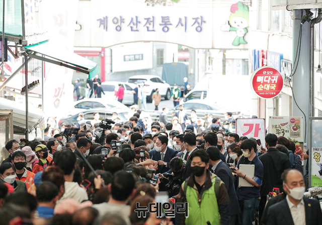 [포토] 인천 계양산전통시장 방문한 윤석열 당선인