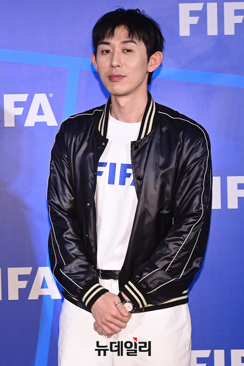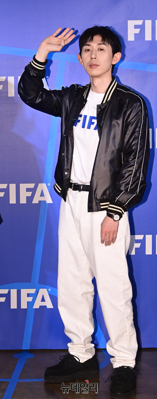 코드쿤스트가 26일 오후 서울 성동구 에스팩토리에서 열린 FIFA 2022 FW 컨벤션 및 포토콜 행사에서 포즈를 취하고 있다.