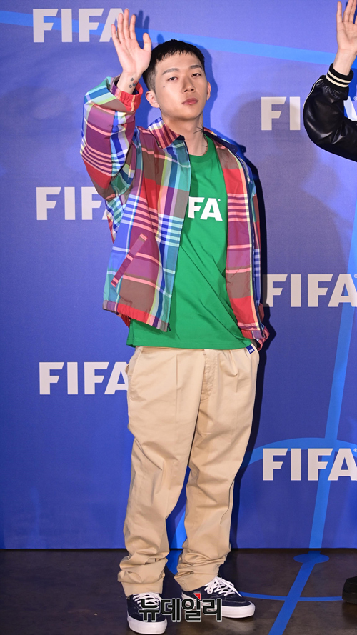 가수 우원재가 26일 오후 서울 성동구 에스팩토리에서 열린 FIFA 2022 FW 컨벤션 및 포토콜 행사에서 포즈를 취하고 있다.
