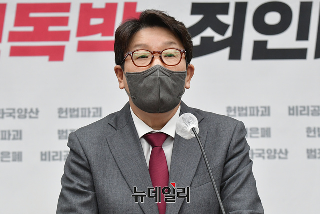 권성동 국민의힘 원내대표가 26일 오후 국회에서 열린 의원총회에서 모두발언을 하고 있다.