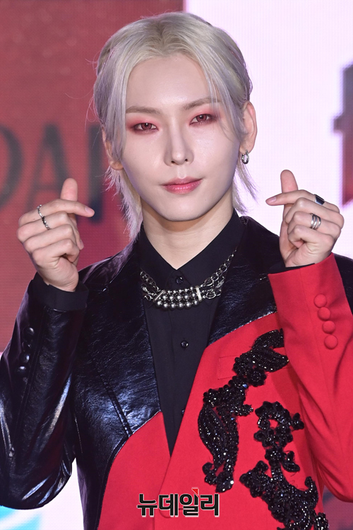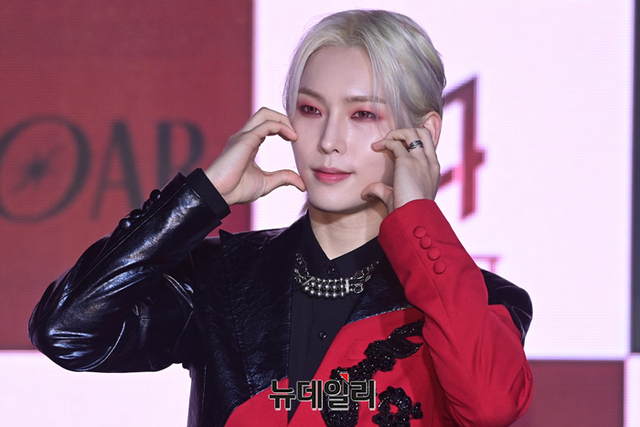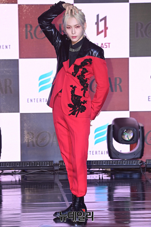 아이돌그룹 엘라스트 멤버 라노가 27일 오후 서울 강남구 일지아트홀에서 열린 미니 앨범 3집 '로어' 발매기념 쇼케이스에서 포즈를 취하고 있다.