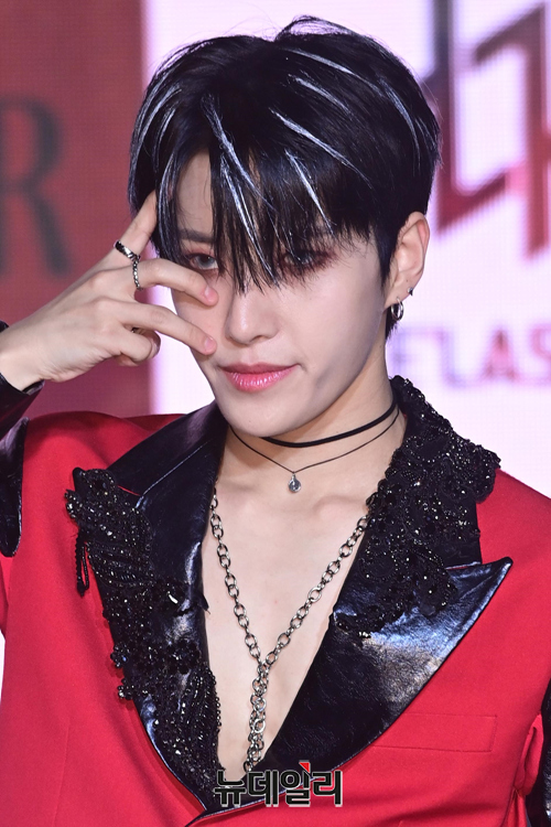 아이돌그룹 엘라스트 멤버 최인이 27일 오후 서울 강남구 일지아트홀에서 열린 미니 앨범 3집 '로어' 발매기념 쇼케이스에서 포즈를 취하고 있다.