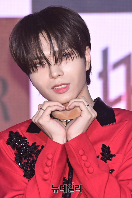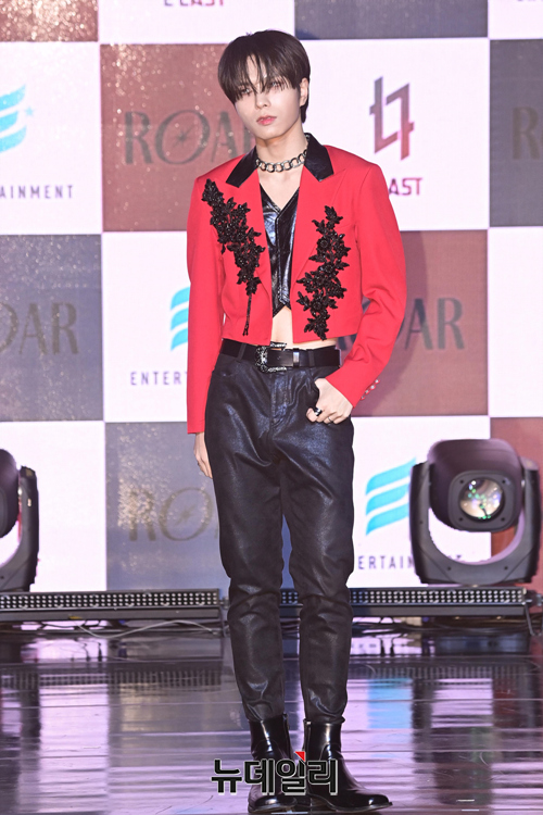 아이돌그룹 엘라스트 멤버 예준이 27일 오후 서울 강남구 일지아트홀에서 열린 미니 앨범 3집 '로어' 발매기념 쇼케이스에서 포즈를 취하고 있다.