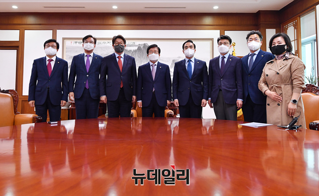 [포토] 검수완박 놓고 모인 국회의장과 여야 원내대표