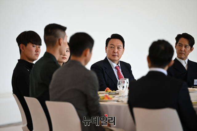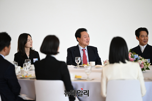 행사엔 배우 이정재, 이성호 디스트릭트 대표, 배상민 산업디자이너, 최민정 쇼트트랙 선수, 김제덕 양궁 선수, 우상혁 높이뛰기 선수, 정지현 레슬링 선수, 이영표 전 축구 선수, 손열음 피아니스트, 김보라 엠비규어댄스 컴퍼니 대표, 국악인 송소희 등이 참석했다. (사진=인수위)