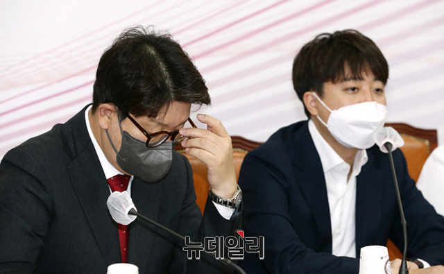 권성동 국민의힘 원내대표가 28일 오전 국회에서 열린 최고위원회의에서 생각에 잠겨 있다.