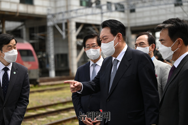 [포토] 천안역 방문해 GTX-C 노선연장 사안 보고 받는 윤석열