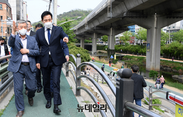 [포토] 서울형 수변감성도시 사업, 홍제천 둘러보는 오세훈 서울시장