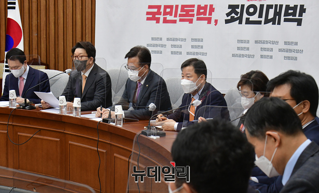 [포토] 원내대책회의 주재하는 권성동 국민의힘 원내대표
