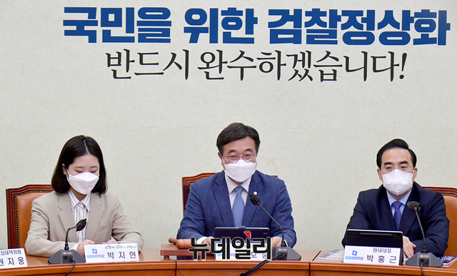 윤호중 더불어민주당 공동비상대책위원장이 29일 오전 국회에서 열린 비상대책위원회의에서 모두발언을 하고 있다.