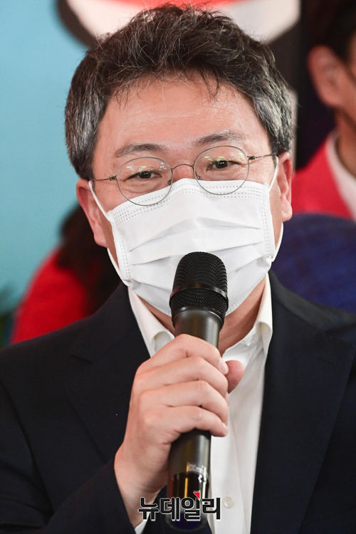 박정하 국민의힘 원주갑 당협위원장이 30일 오후 강원 원주시 김진태 강원지사 선거사무소에서 열린 개소식에서 인사말을 하고 있다. (강원 원주=강민석 기자)