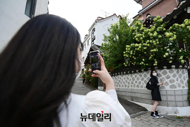 실외 마스크 착용 의무화 원칙 해제를 하루 앞두고 있는 1일 오후 서울 종로구 계동길을 찾은 마스크를 쓴 시민들이 산책을 하고 있다.정부는 "코로나19 유행이 뚜렷한 감소세를 보이고 방역·의료적 대응이 안정기에 접어들어 각자의 상황에 맞게 감염 위험을 판단하도록 마스크 착용을 선택에 맡겼다"며 "다만 50명 이상이 모이는 집회나 공연, 스포츠 경기를 관람할 때는 실외라도 마스크를 써야 한다"고 말했다.2020년 10월 13일 마스크 착용 의무화가 시행된 지 566일 만에 해제된다.