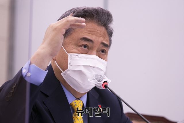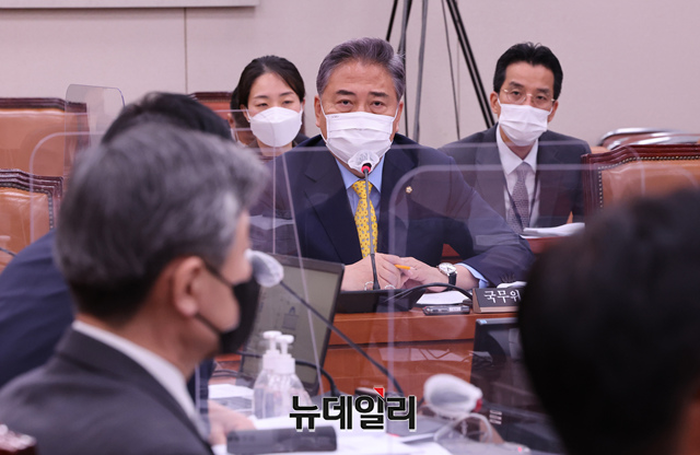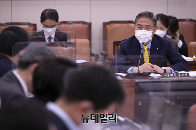박진 외교부 장관 후보자가 2일 국회 외교통일위원회에서 열린 인사청문회에서 의원들의 질의에 답변을 하고 있다. (사진=공동취재단)