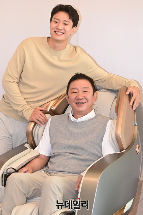 [포토] 바디프랜드 새 광고모델 발탁된 '허재·허웅' 부자