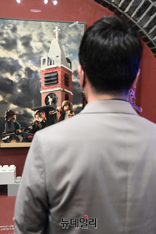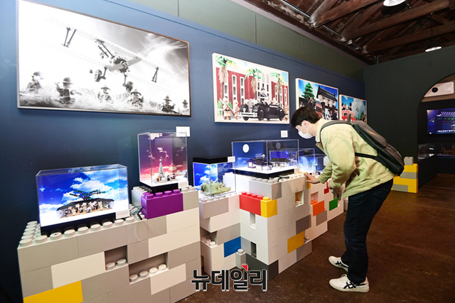 제100주년 어린이날을 앞둔 3일 오후 서울 종로구 정독도서관에서 열린 특별전 '장난감으로 만나는 나라를 지킨 영웅들' 레고 전시에서 관람객들이 작품을 관람하고 있다.정독도서관 서울교육박물관은 "어린이들에게 친숙한 블록 장난감을 소재로 나라를 위해 힘쓴 위인들의 이야기를 전하고자 특별전을 기획했다"며 "전시회는 △장난감 작품 전시 △사진 전시 △실감형 게임 콘텐츠 운영으로 구성돼 있다"고 밝혔다.전시회는 무료 관람이다. 관람시간은 평일 오전 9시부터 오후 6시까지, 주말 오전 9시부터 오후 5시까지다. 공휴일과 정기휴관일은 문을 닫는다.