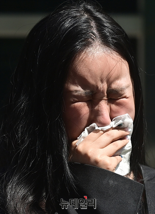 [포토] 눈물 훔치는 정유라...조국·안민석·주진우·김어준 고소