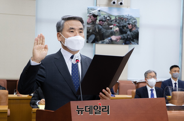 이종섭 국방부장관 후보자가 4일 국회에서 열린 인사청문회에 출석해 선서를 하고 있다. (사진=공동취재단)