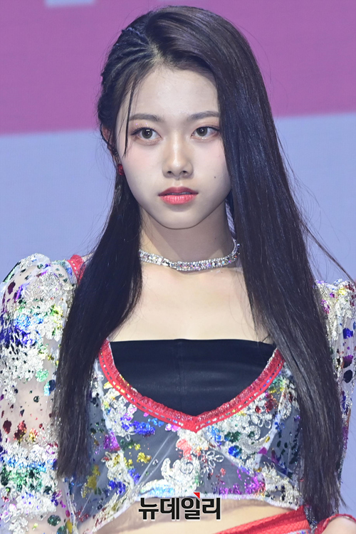 신인 걸그룹 클라씨 멤버 원지민이 4일 오후 서울 광진구 예스24홀에서 열린 첫 번째 미니앨범 'Y '클래스 이즈 오버( Y 'CLASS IS OVER)' 데뷔 쇼케이스에서 포즈를 취하고 있다.
