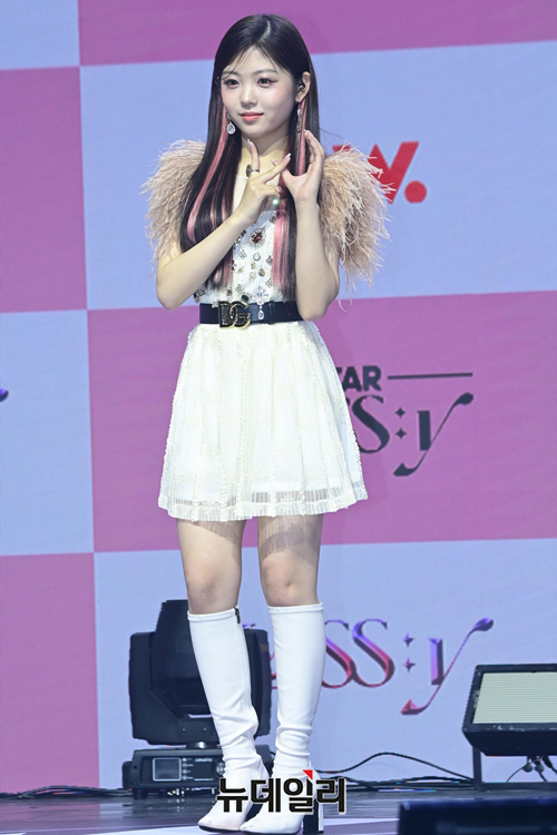 신인 걸그룹 클라씨 멤버 김리원이 4일 오후 서울 광진구 예스24홀에서 열린 첫 번째 미니앨범 'Y '클래스 이즈 오버( Y 'CLASS IS OVER)' 데뷔 쇼케이스에서 포즈를 취하고 있다.