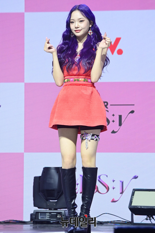신인 걸그룹 클라씨 멤버 박보은이 4일 오후 서울 광진구 예스24홀에서 열린 첫 번째 미니앨범 'Y '클래스 이즈 오버( Y 'CLASS IS OVER)' 데뷔 쇼케이스에서 포즈를 취하고 있다.