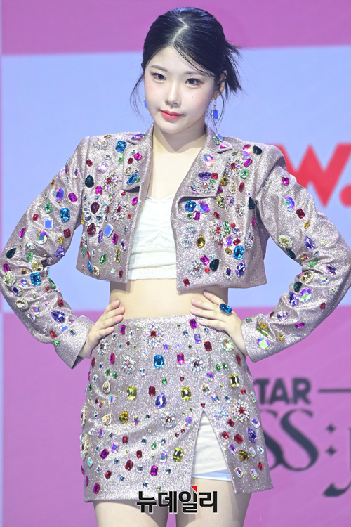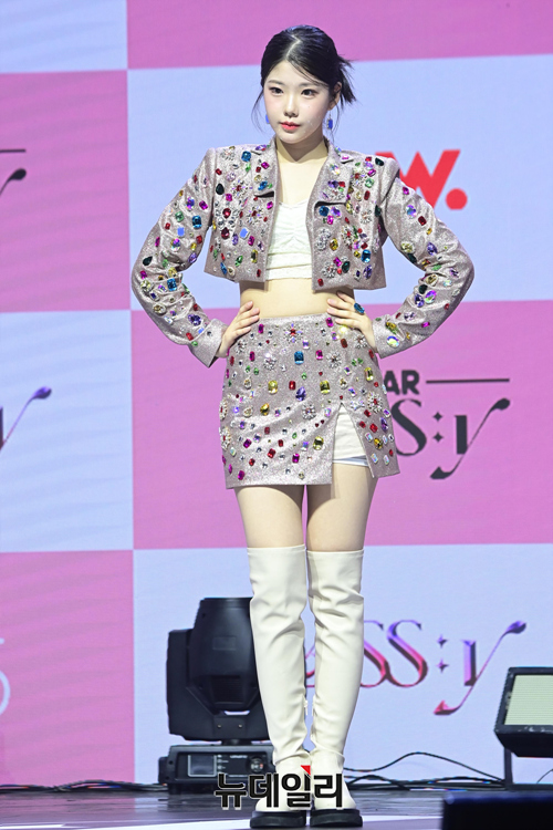 신인 걸그룹 클라씨 멤버 윤채원이 4일 오후 서울 광진구 예스24홀에서 열린 첫 번째 미니앨범 'Y '클래스 이즈 오버( Y 'CLASS IS OVER)' 데뷔 쇼케이스에서 포즈를 취하고 있다.