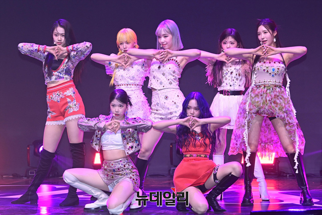 신인 걸그룹 클라씨(원지민, 김선유, 명형서, 홍혜주, 김리원, 박보은, 윤채원)가 4일 오후 서울 광진구 예스24홀에서 열린 첫 번째 미니앨범 'Y '클래스 이즈 오버( Y 'CLASS IS OVER)' 데뷔 쇼케이스에서 무대를 선보이고 있다.