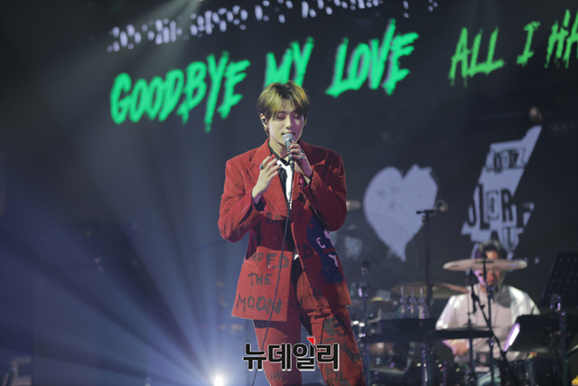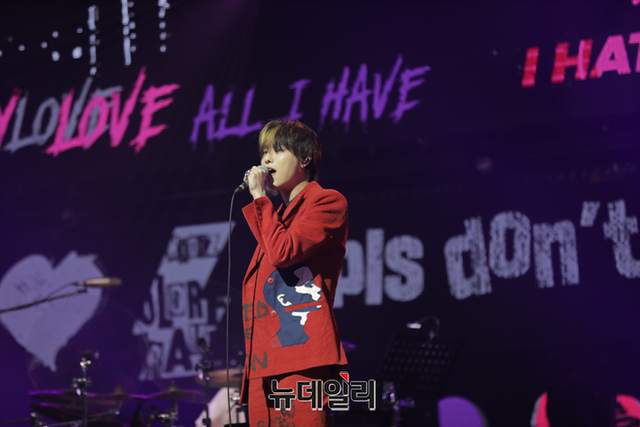 가수 우즈가 4일 오후 온라인으로 열린 네 번째 미니앨범 '컬러풀 트라우마(COLORFUL TRAUMA)' 발매 기념 쇼케이스에서 무대를 선보이고 있다.'컬러풀 트라우마'는 나를 괴롭혔던 다양한 모습과 상처들이 시간이 지나고, 지금 다시 뒤돌아보니 다채롭게 남아있는 기억을 우즈만의 시각으로 풀어낸 앨범이다.타이틀곡 '난 너 없이'를 포함해 '더트 온 마이 레더' '하이잭' '베터 앤 베터' '안녕이란 말도 함께'까지 총 5곡이 수록됐다. 음원은 4일 오후 6시에 공개된다. (사진=위에화엔터테인먼트)