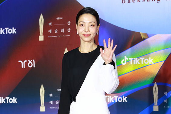 배우 김신록이 6일 오후 경기 고양시 일산 킨텍스에서 열린 제58회 백상예술대상 레드카펫에서 포즈를 취하고 있다. (사진=백상예술대상)