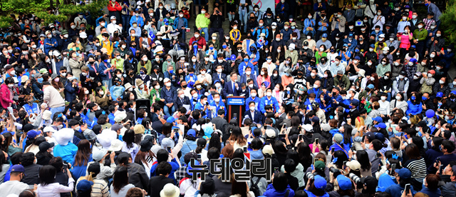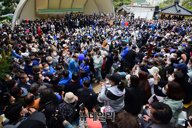 [포토] 계양산 야외공연장 가득메운 이재명 지지자들