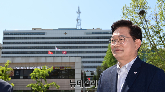 송영길 더불어민주당 서울시장 후보가 9일 오전 서울 용산구 전쟁기념관 6·25상징탑 앞에서 윤석열 당선인의 용산 집무실 이전과 관련해 기자회견을 하고 있다.송 후보는 "윤석열 집무실과 관사 이동간의 교통통제와 통신차단으로 시민들이 불편을 느끼겠다"며 "한남동 관사 주변의 산책로마저 시민들의 자유로운 출입이 일부 제한 받을 것이다"고 말했다.기자회견에는 송영길 후보, 김병주 국회의원, 김진애 전 국회의원, 조명래 전 환경부 장관 등이 참석했다.