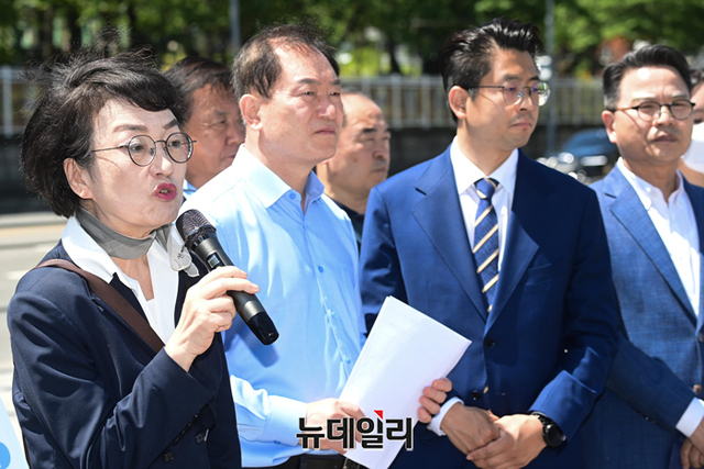 [포토] 김진애 전 의원 '윤석열 당선인 집무실 이전' 규탄 기자회견 참석