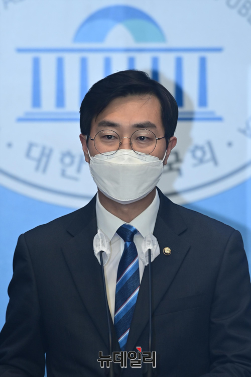 장경태 더불어민주당 의원이 9일 오후 서울 여의도 국회 소통관에서 열린 원희룡 국토교통부 후보자 인사청문경과보고서 관련 기자회견에서 발언을 하고 있다.