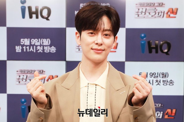 가수 동현이 9일 오후 온라인으로 열린 IHQ 신규 예능프로그램 '걱정말아요 그대, 변호의 신' 제작발표회에서 포즈를 취하고 있다.