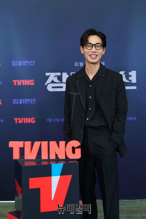 배우 김도윤이 10일 오후 온라인으로 열린 티빙 오리지널 시리즈 '장미맨션(연출 창감독, 극본 유갑열)' 제작발표회에서 포즈를 취하고 있다.