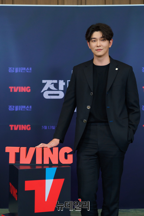 배우 윤균상이 10일 오후 온라인으로 열린 티빙 오리지널 시리즈 '장미맨션(연출 창감독, 극본 유갑열)' 제작발표회에서 포즈를 취하고 있다.