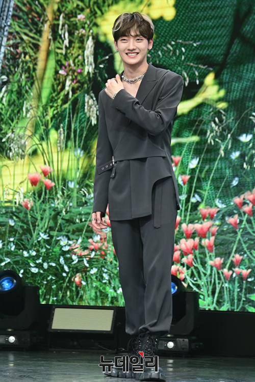 아이돌그룹 싸이퍼 멤버 원이 11일 오후 서울 중구 크레스트72에서 열린 3집 미니앨범 '더 코드' 발매기념 쇼케이스에서 포즈를 취하고 있다.