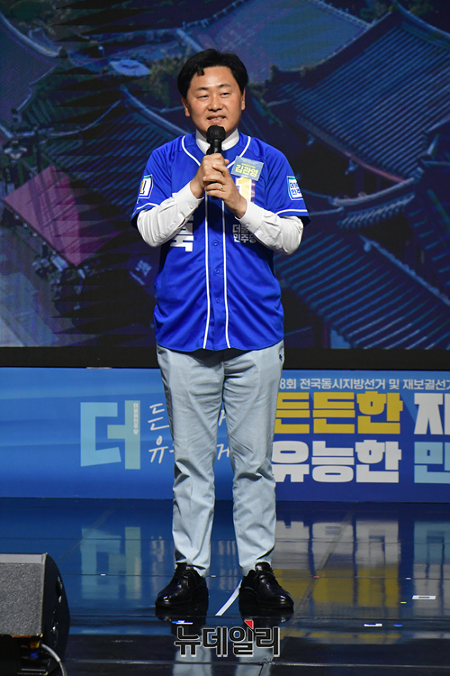 김관영 전북도지사 후보가 11일 국회에서 열린 더불어민주당 전국동시지방선거 및 재보궐선거 통합선거대책위원회 출범식 및 공천장 수여식에 참석해 발언을 하고 있다.