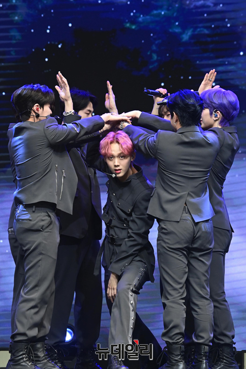 아이돌그룹 싸이퍼(현빈, 탄, 휘, 케이타, 태그, 도환, 원)가 11일 오후 서울 중구 크레스트72에서 열린 3집 미니앨범 '더 코드' 발매기념 쇼케이스에서 무대를 선보이고 있다.'더 코드'는 암호에서 유래한 그룹명과 숨겨진 코드와 새로운 세상을 향해 펼쳐질 일곱 가지의 정체성을 다룬 앨범이다.타이틀곡 '페임'을 포함해 인트로 '더 코드' '슬램 더 도어' '온 어 하이웨이' '너를 다시' '있을게'까지 총 6곡이 수록됐다. 음원은 11일 오후 6시에 공개된다.