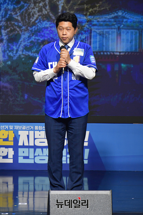 서재헌 대구광역시장 후보가 11일 국회에서 열린 더불어민주당 전국동시지방선거 및 재보궐선거 통합선거대책위원회 출범식 및 공천장 수여식에 참석해 발언을 하고 있다.