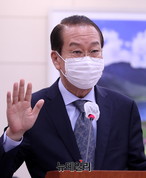권영세 통일부 장관 후보자가 12일 오전 국회 외교통일위원회에서 열린 인사청문회에서 선서를 하고 있다. (사진=공동취재단)