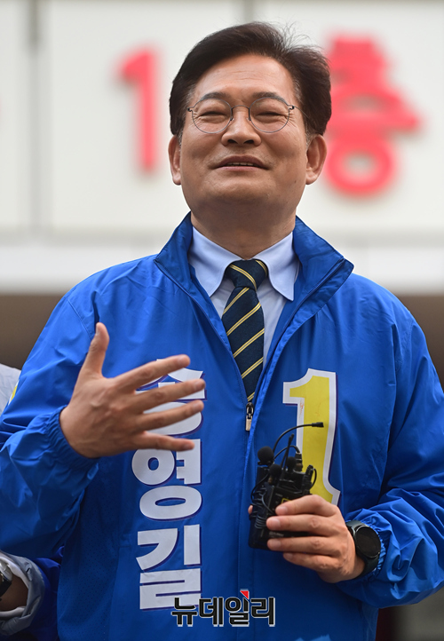 [포토] '개딸'들과 기념촬영하는 송영길 서울시장 후보