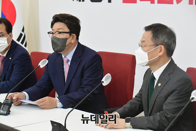 [포토] 환담 나누는 권성동 원내대표와 이종호 장관