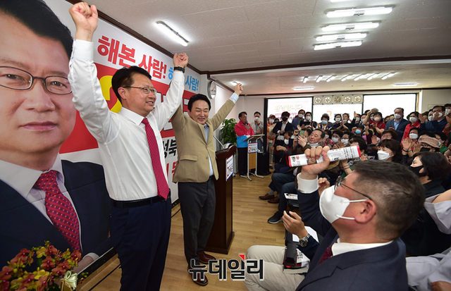 [포토] 정태근 국민의힘 성북구청장 후보 개소식 참석한 원희룡